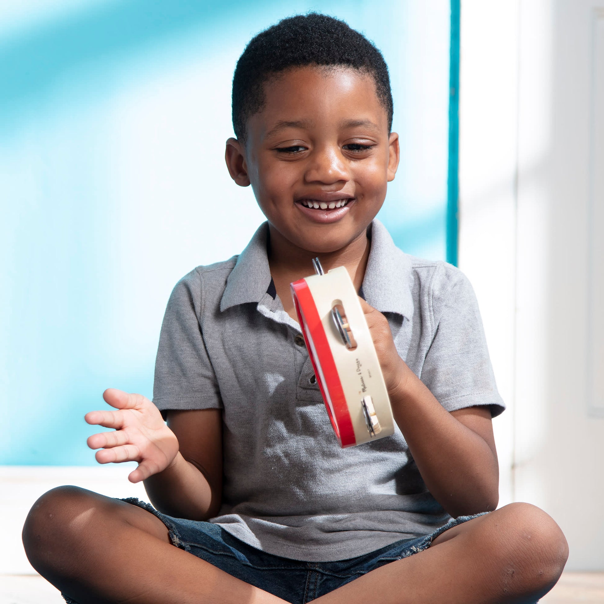 Band in a Box musical instrument set has everything preschoolers need to form a kids' marching band, launch a solo career, or just enjoy exploring music and sounds! The set includes a tambourine, cymbals, maracas, clacker, tone blocks, and a triangle, plus a sturdy wooden storage crate. Strike up the band and spark a lifelong love of music with this unique wooden set of wooden instruments.