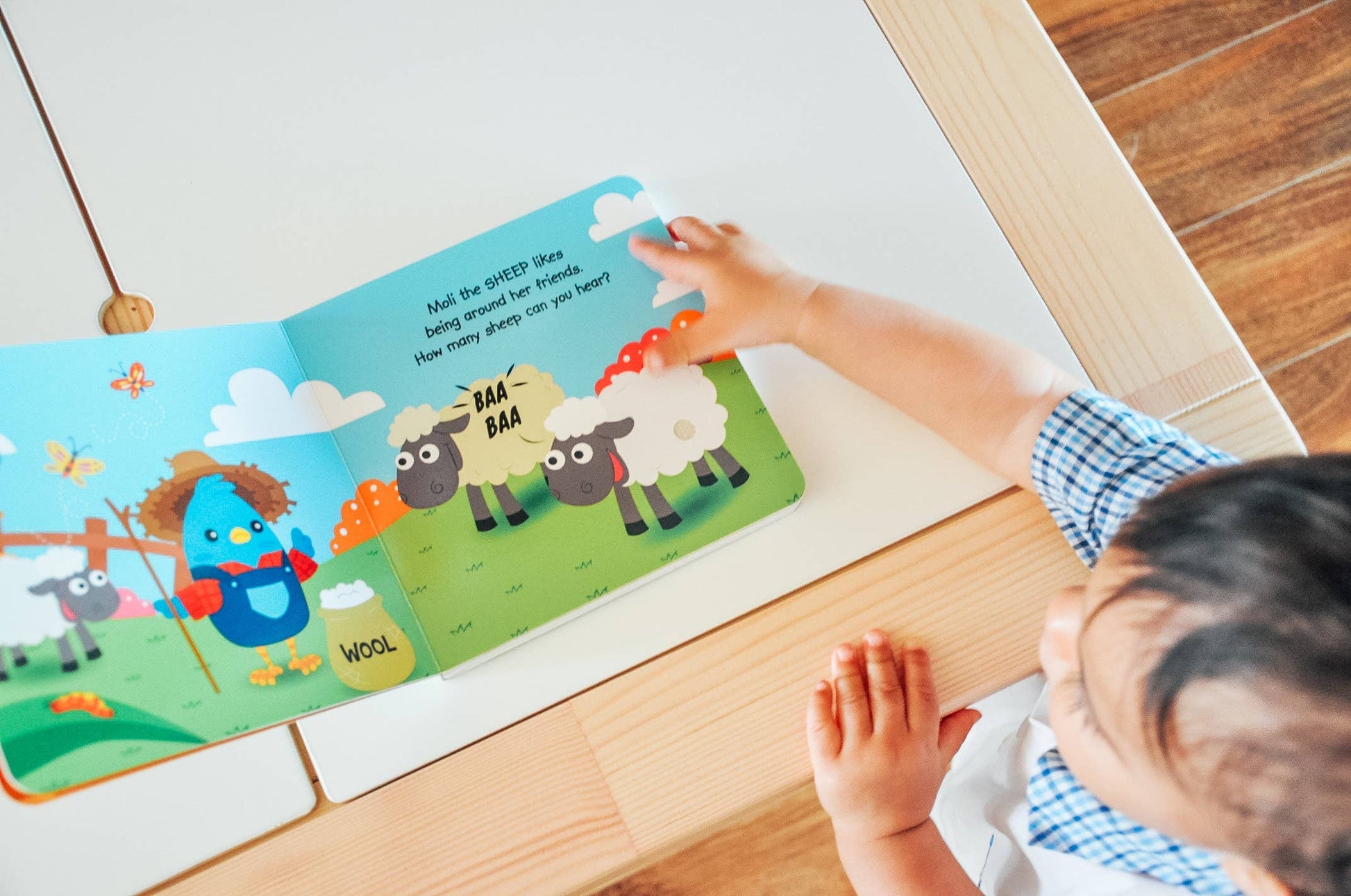 Is there a better place than a farm to meet friendly animals? What sound does this animal make? Let's join a ditty bird and take a walk around the farm. Press the sound button on each page to listen to real-life animal sounds and ‘moo’, ‘baa’, ‘quack’ along with our favorite animal sounds song! The book introduces the first facts about five favorite farm animals: -Bella, the cow -Robby, the pig -Moli, the sheep -Gavin, the horse -And darcy, the duck * Ages 1+ * Made for little hands * Easy-to-press buttons with sounds that reinforce word-sound associations * Interactive features that encourage parent-child bonding and interaction * Contributes to early learning and language development * 6 Sounds to discover * On/Off button for extended battery life & easily replaceable batteries * 3x type ag10 batteries are included in the book * Testing units: 30 books=2 testers 200 books=5 testers