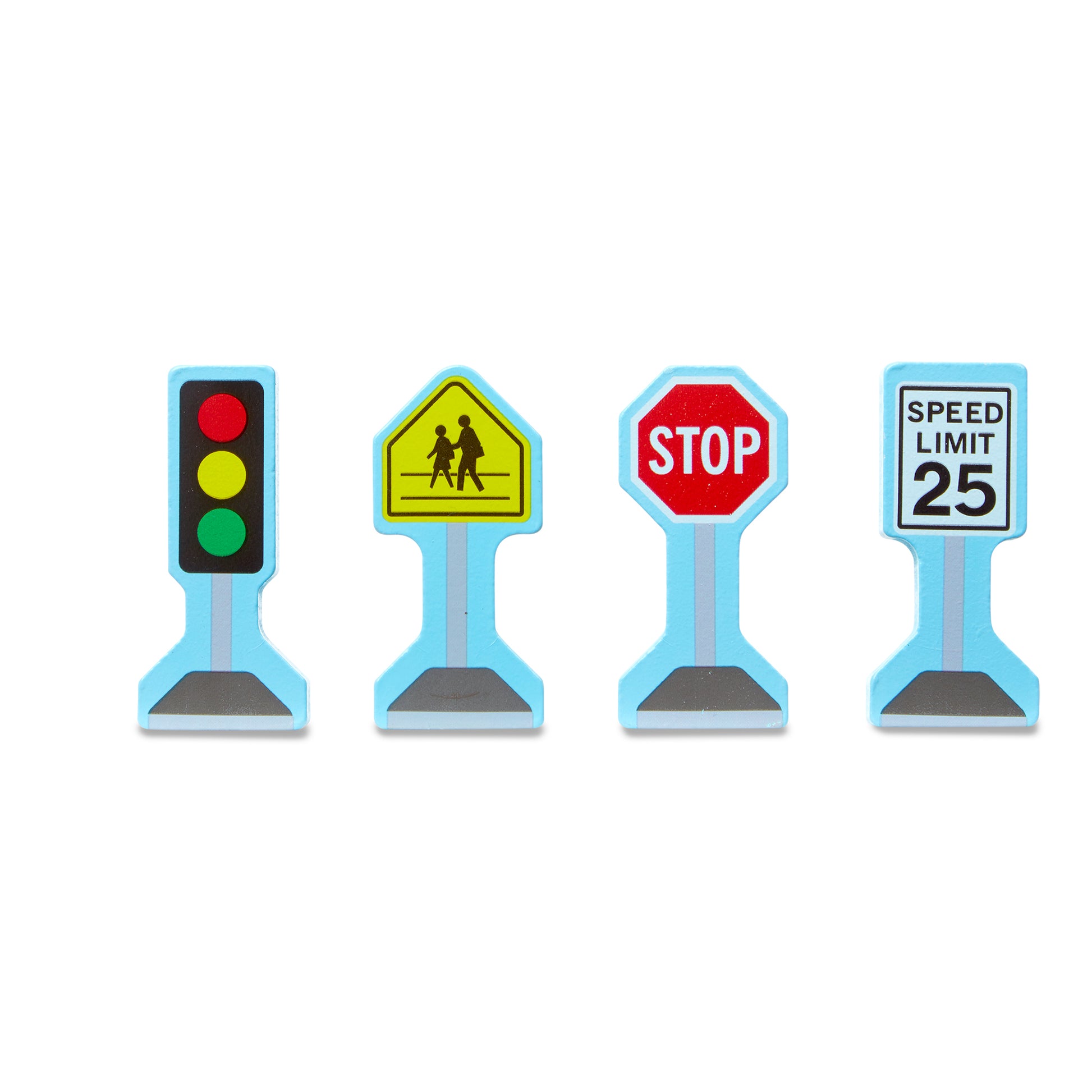 Built-in tracks, colorful scenery, and fun play pieces let kids take their imaginations for a spin . . . and take playtime anywhere they want to go! Unfold the sturdy wooden case to create an illustrated play surface with built-in road tracks for the three wooden wheeled vehicles (a police car, ambulance, and fire engine) and a wooden helicopter to race to the rescue. Set up a bridge and a city tunnel with a monorail that slides across the top! Wooden play pieces include buildings, traffic signs, and a tree to enhance imaginative storytelling. All the pieces store in the fold-up case with convenient carrying handle for easy cleanup and travel (there’s plenty of room to add other toys, too!). Keep playtime rolling for kids three and older and encourage independent play and motor skill development.