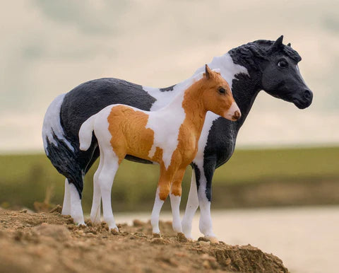The sweet pair of the Phantom and Misty is presented on the original Misty and Stormy sculptures created by artist Chris Hess in the 1970s. To make this set even more special, it’s the first time Breyer has released models of the Phantom and of Misty as a foal!