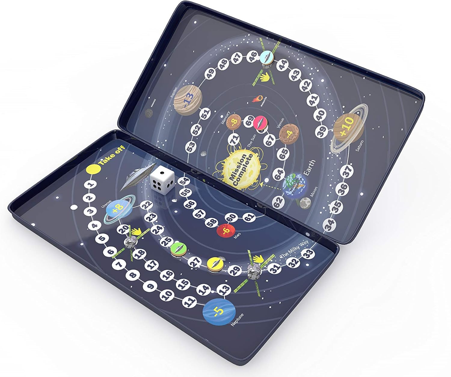 Product description Play the Purple Cow Space Mission on the go. This is a game designed to keep your kids busy for hours and educate them on the Solar System. The PURPLE COW Solar Mission provides entertainment on the go. Perfect for long car rides, on the plane, and to take with you on vacations. The Purple Cow offers a series of 36 different magnetic mini travel games to provide hours of fun and enhance learning and engagement with one another rather than hooked to screens. Suitable for ages 5 and up. ABOUT The Purple Cow Company Purple Cow is a family owned company founded in Australia. The company specially designs games for kids and adults to stay engaged with one another. Their focus and mission is to create screen-free, hands on games. without using technology and gadgets. "We believe play time should involve the whole family and lots of curiosity and learning Come play with us"